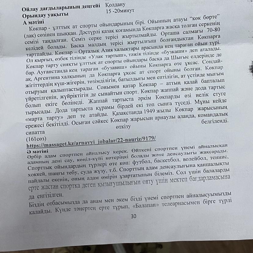 айырмашылығы:А мәтінініде көкпар қазақтың спорт түрін айтып тұр Ә-мәтінінде спортқа баулу, спорт денсаулық кепілі екендігін айтып тұр