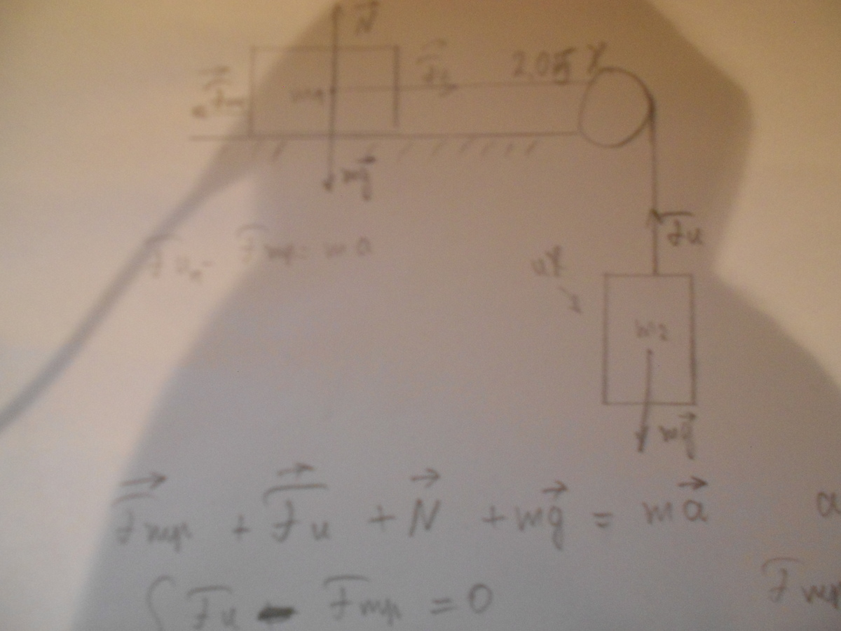 Два тела массами м1=250 г и м2=400г связаны невесомой нерастяжимой нитью, перекинутой через невесомый неподвижный блок. Коэффициент трения между телом массой м1 и горизонтальной поверхность равен 0,82(мю). Чему равен модуль силы натяжения нити?