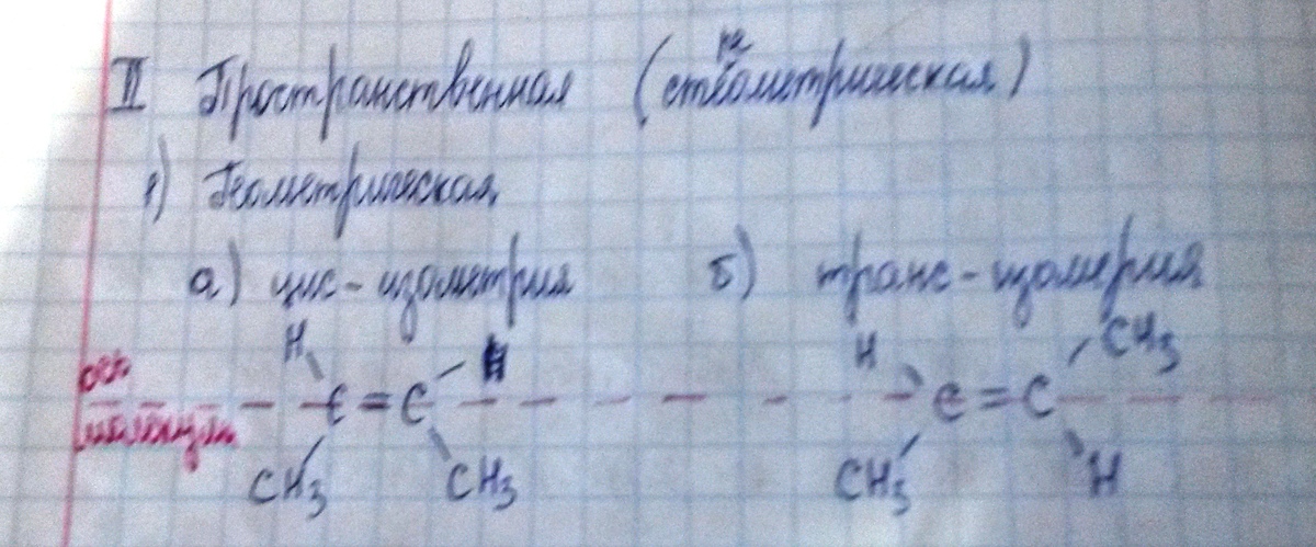 Типы пространственной изомерии: цис-изомерия и транс-изомерия ( Объяснить перевод с иностранного языка слово цис и транс).