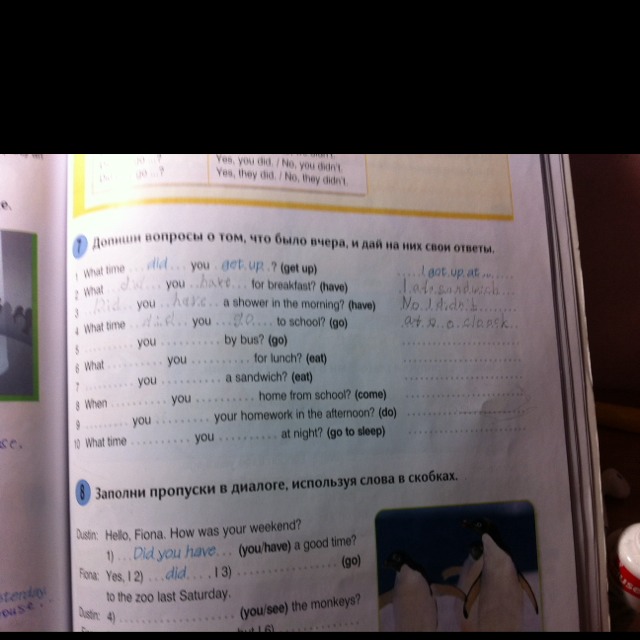 8. When did you come home from school? I come...,.