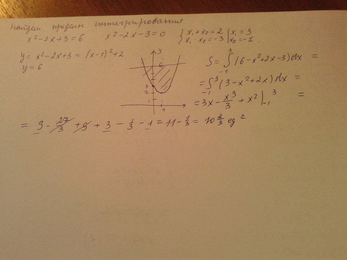 Вычислить площадь фигуры ограниченной линиями y=x^2-2x+3, y=6