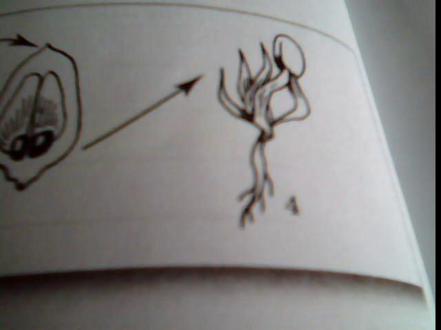К ней спирально прикрепляются микроспорофиллы (гомологи тычинок), имеющие с нижних сторон по два пыльцевых мешка - микроспорангия.