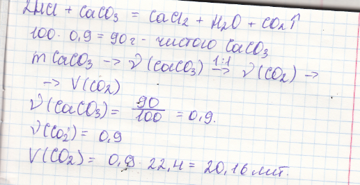 Какой объем углекислого газа образуется при взоимодействии соляной кислоты с 100 грамм карбаната калия ,содержащего 10 % примесей .
