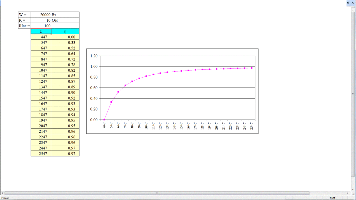 Поскольку Коэффициент полезного действия вырос с 20% до 99%, мы видим насколько эффективно повышать напряжение.