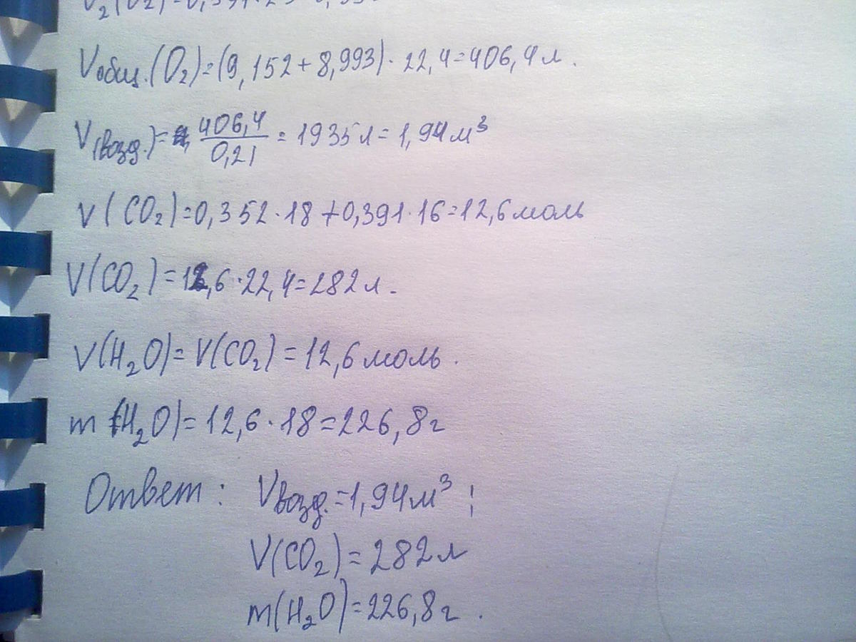 Смесь твёрдых жирных кислот - пальмитиновой и стеариновой - называют стеарином (именно из него изготавливают стеариновые свечи). Какой объем воздуха (н.у.) потребуется для сжигания двухсотграммовой стеариновой свечи, если стеарин содержит равные массы пальмитиновой и стеариновой кислот? Какой объем углекислого газа (н.у.) и масса воды образуются при этом? :) РЕШИТЕ ПОЖАЛУЙСТА!