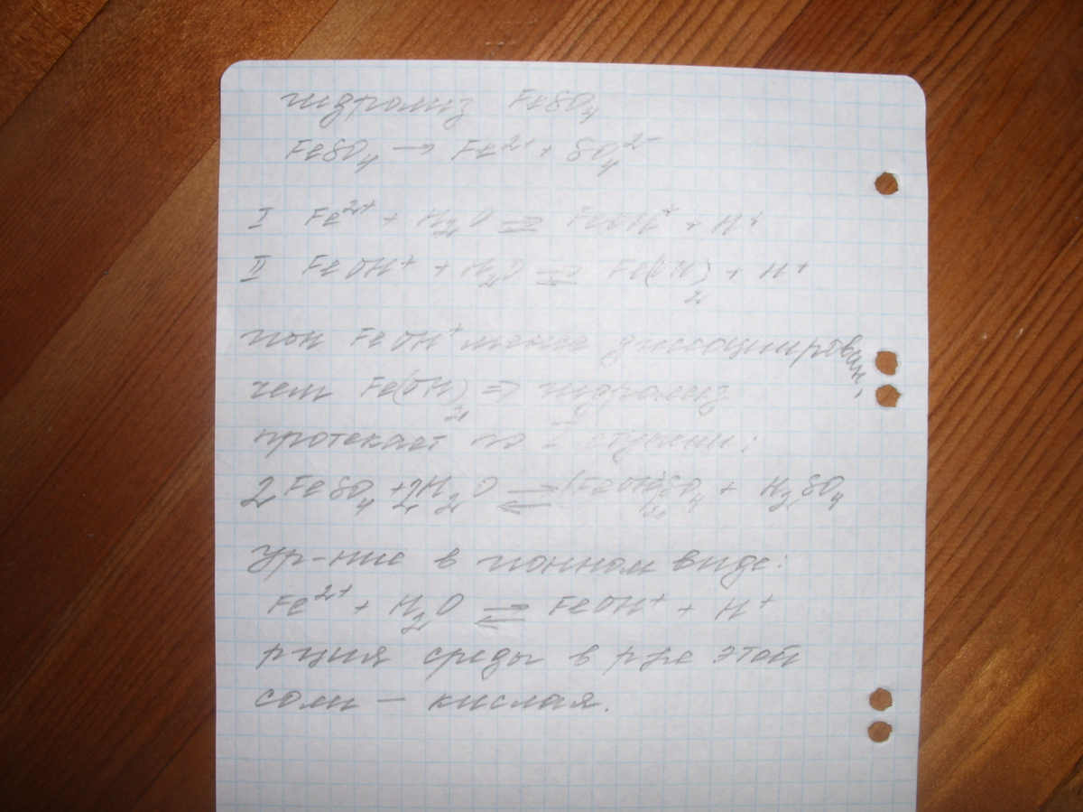 Гидролиз соли на фотографии: