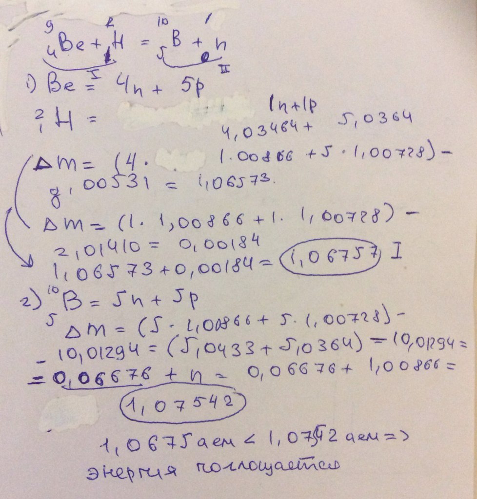 Проведите энергетический расчет ядерной реакции и выясните,выделяется или поглощается энергия в этой реакции : 4Be9 + 1H2 = 5B10 + 0n1.