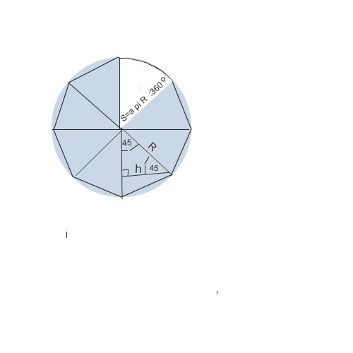 Высота каждого из 8 треугольников, составляющих поверхность правильного восьмиугольника, проведенная из угла к радиусу окружности, является стороной равнобедренного прямоугольного треугольника с гипотенузой, равной радиусу.