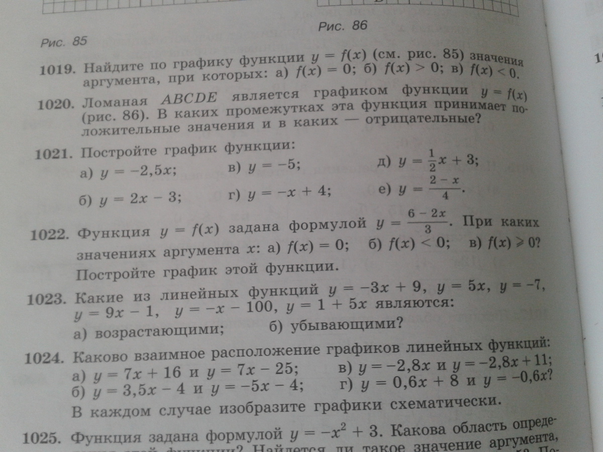 1031 а) у = ах + 5 при a < 0 - это прямая, проходящая сверху вниз направо через точку (0;5), то есть при х = 0 у = +5.