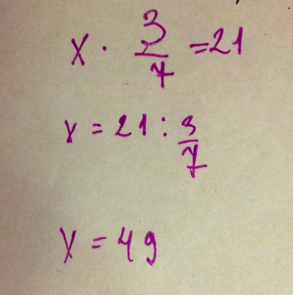 Федя задумал число, 3/7 которого равны 21 . Какое число задумал Федя?