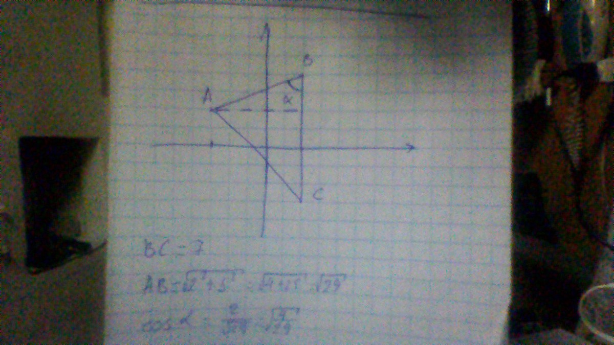 Вычислите косинус угла между векторами AB и BC данными вв задаче 1 A(-3;2)B(2;4);C(2;-3)