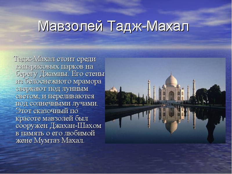 Сообщение о ТаджМахале, коротко!