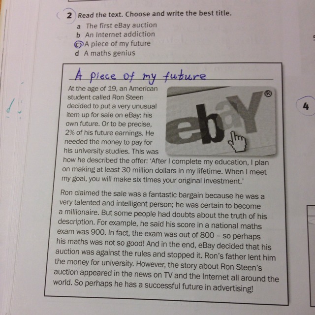 Короче, парень хотел продать свое будущее(т.к ему не хватало денег на университет), но в конце-концов его отец прислал ему деньги :)