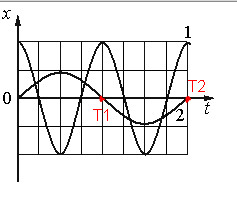 смещения x от времени t при колебаниях двух