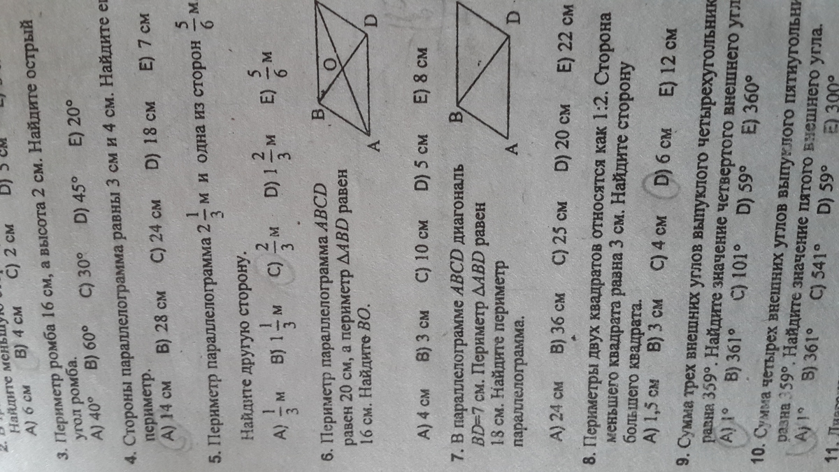 6)В-3см.Решение на листочке.Ответ такой,т.к диагонали парал-мма точкой пересечения делятся пополам)