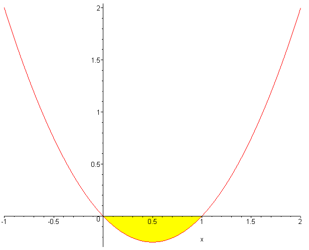 Фигура ограничена сверху прямой y = 0, снизу функцией y = x^2-x