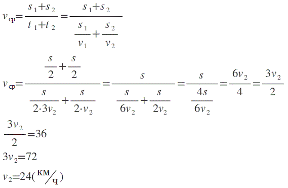 общая формула первую половину пути автобус проехал со скоростью в 3 раза больше чем вторую средняя скорость на всём пути равна 36 км/ч определить скорость авобуса на второй половине пути