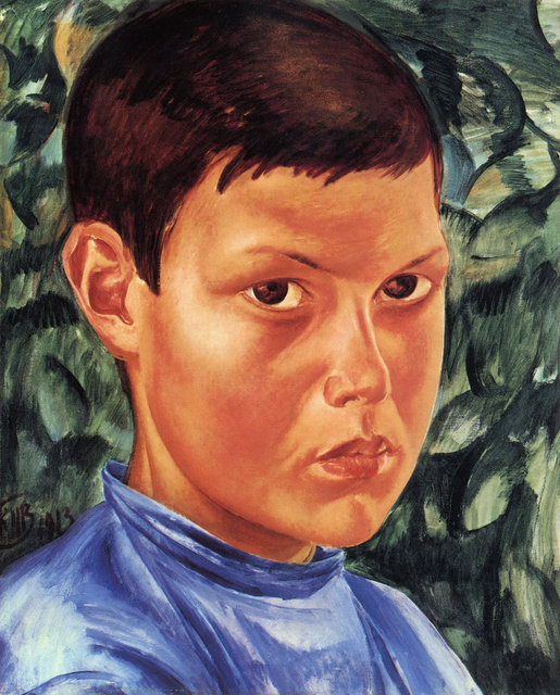 Портрет - любимый жанр Кузьмы Петрова - Водкина. На картине изображен подросток лет двенадцати. Он уже не ребенок, но еще не взрослый. Строгий взгляд, плотно сжатые губы, упрямый рот " говорят " о том, что мальчик уже не в нежном возрасте , но уже способен отвечать за каждый свой поступок. Глаза , карие глаза, все же " выдают в нем" совсем еще безусого юнца. Они кажутся глубокими и чуть растерянными. Что ждет ребенка? Неизвестно. Петров- Водкин, конечно, обращает внимание зрителя на лицо. Но все же мальчик изображен на зеленом фоне, а зеленый - цвет надежды, мира и добра. Автор верит в безоблачное будущее изображенного им человека. Мысли ребенка чисты. Полотно учить любить детей, верить в их светлое будущее.