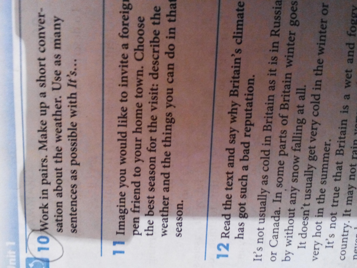Пожалуйста, помогите с 10 номером.(там нужно составить диалог про погоду, что бы было как можно больше It's) Заранее спасибо за ответ