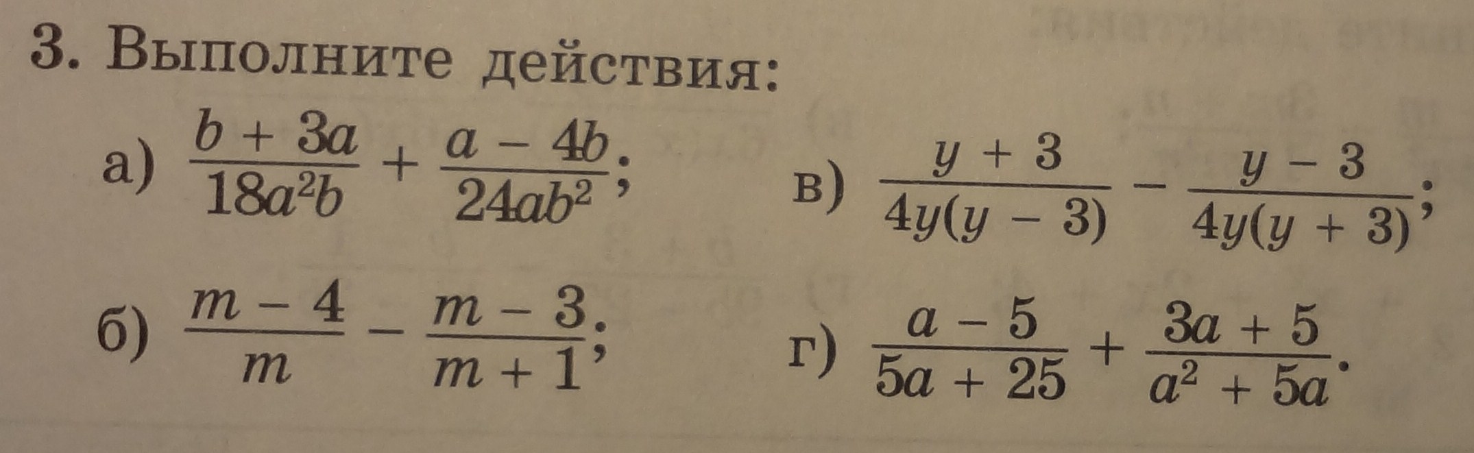 а) b+3a|18a^2b + a-4b|24ab^2=(4b(b+3a)+3a(a-4b))/72a^2b^2=(4b^2+12ab+3a^2-12ab)/72a^2b^2=(4b^2+3a^2)/72a^2b^2