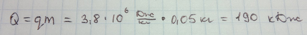 удельная теплота сгорания пороха 3,8 дж/кг. какое количество теплоты выделится при сгорании порохового заряда массой 50 гр???