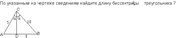 по указанным на чертеже сведениям найдите длину биссектрисы: