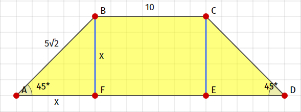 Трапеция равнобедренная:AF=DE=5;AD=5*2+10=20