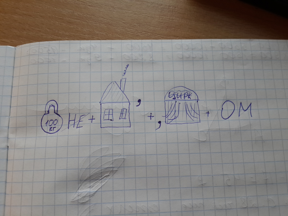 100 кг(значит ЦЕНТНЕР) дальше пишешь Н Е (зачеркнуть) дальше рисуешь ИЗБУ , (запятая значит-убираем последнюю букву в слове ИЗБА) дальше рисуем ЦИРК перед ним ставим , что означает убрать первую букву из слова ЦИРК и в конце пишешь О М