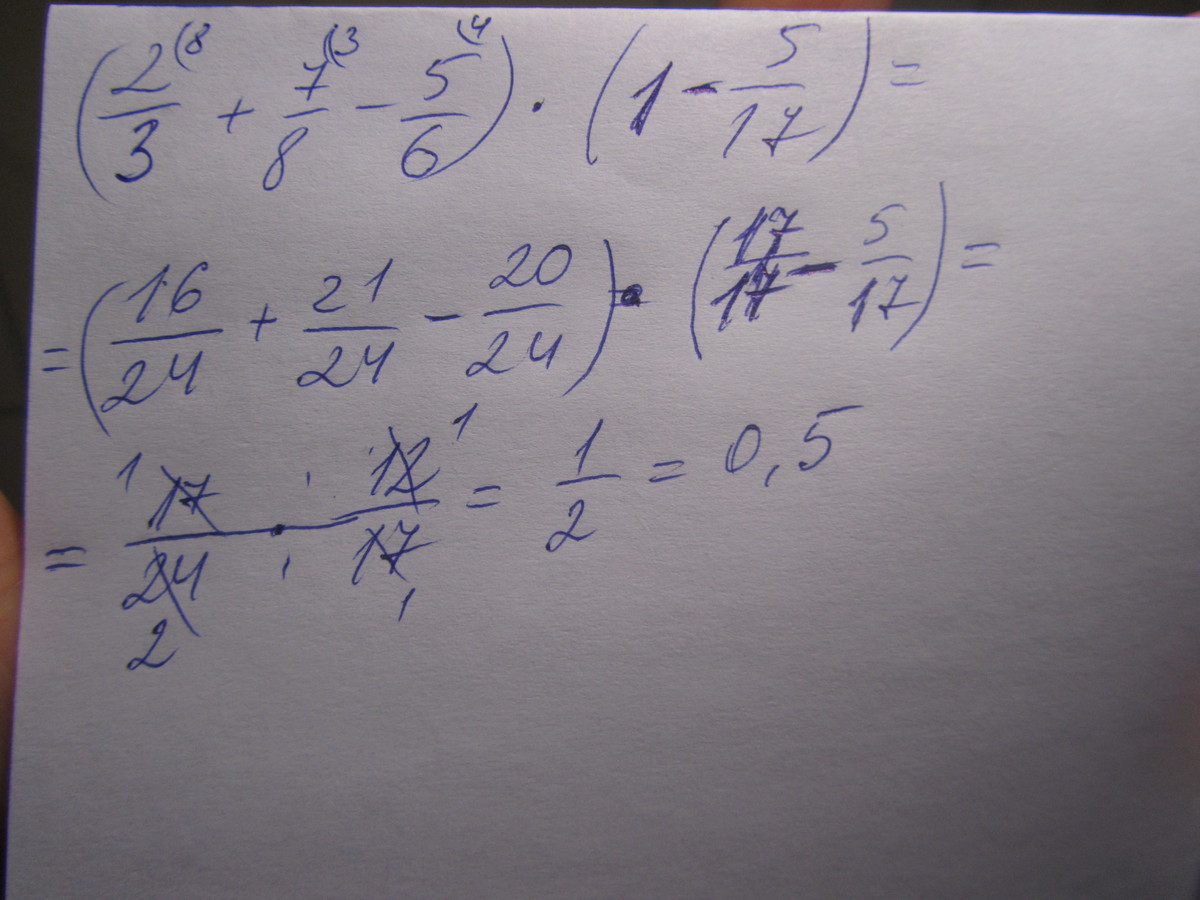 Выполните действие: б)(2/3+7/8-5/6)×(1-5/17)