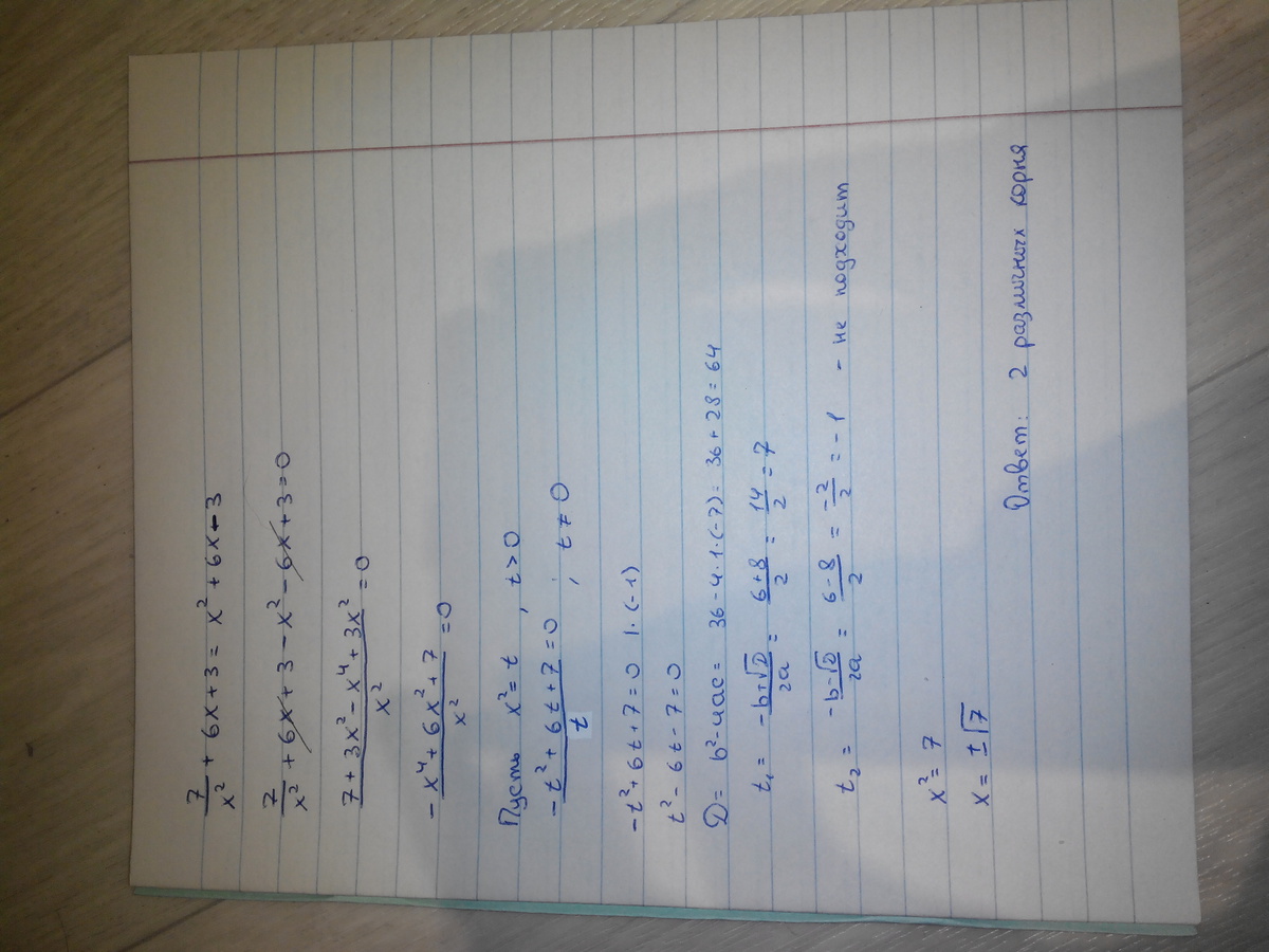 сколько различных корней имеет уравнение 7/x^2+6x+3=x^2+6x-3?