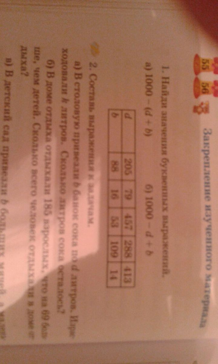 Найти значение буквенных выражений. 1000- (d+b) 1000- d+b