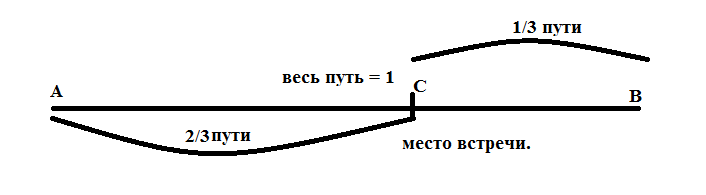 Если автомобиль презжает путь от А до В за 3 часа (АВ=3/3), то путь от А до С будет равен 2/3 АВ;
