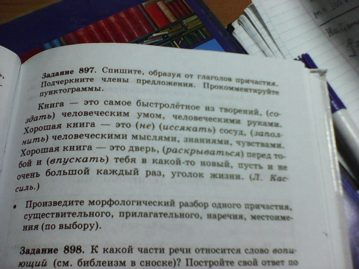 Впускать. Произведите морфологический разбор одного причастия, существительного, прилагательного, наречия, местоимения (по выбору).