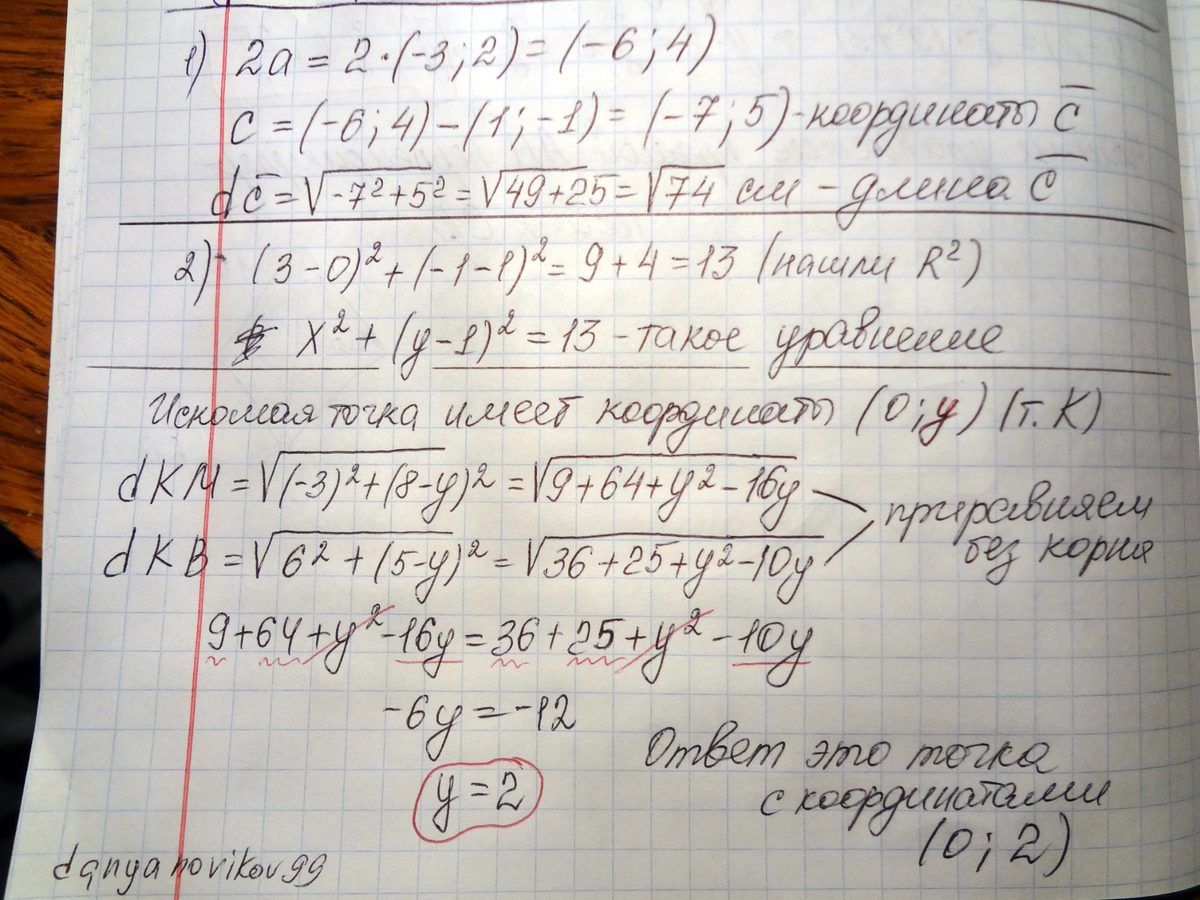 в 3 задании после координат (0 ; у ) стоит ( т. К )- что означает точка К, так мы назвали искомую точку