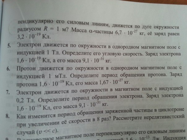Ты формулы Знаешь? Fл=qvB. но так как движется по окружности то Fл=Fравн. Fравн= MAцен=mv^2/r. mv^2/r=qvB делем на скорость mv/R=qB. Формула угловой скорости w(омега)=v/R/ но эта запись уже есть в основной формуле подставляем и получаем. mw=qB; w=qb/m ну а там сами досчитайте. а период обращения равен T=2пR/v и тогда выражаем из той формулы скорость и подставляем сюда и все