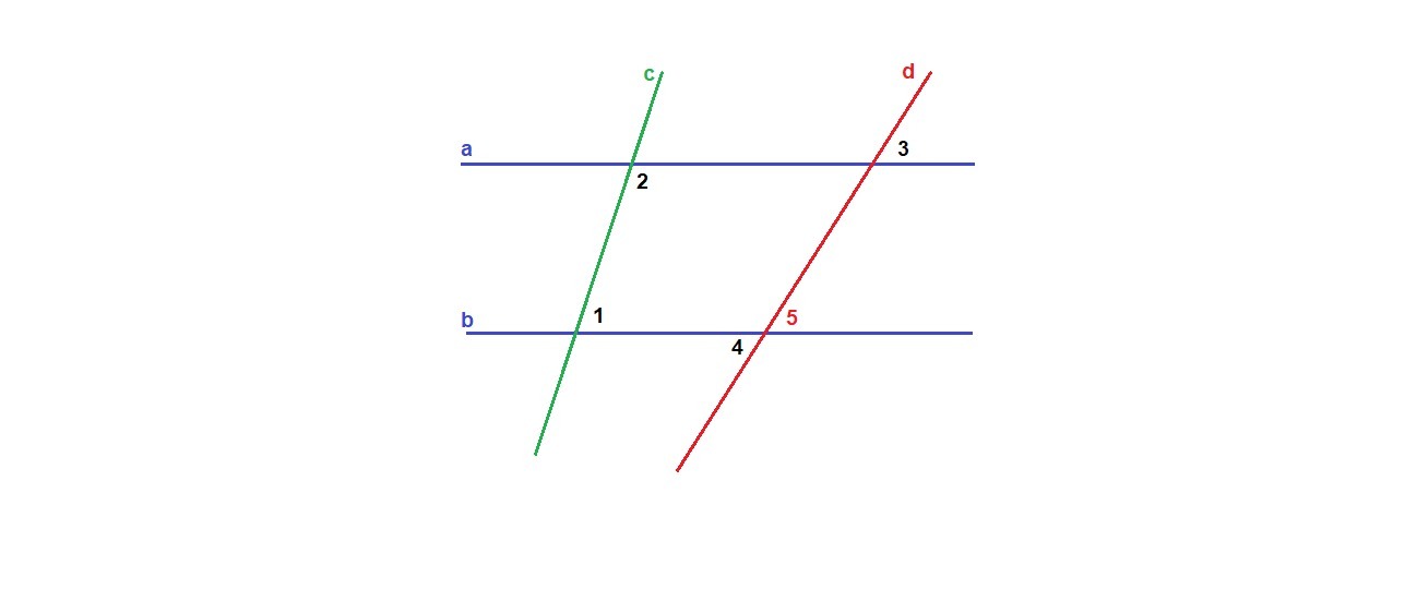 ∠5 = ∠3 = 53° как соответственные при пересечении параллельных прямых а и b секущей d.