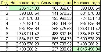 Подберите начальную сумму вкладу так,чтобы после девяти лет хранение сумма вклада в сбербанке стала равна 4645489 р.