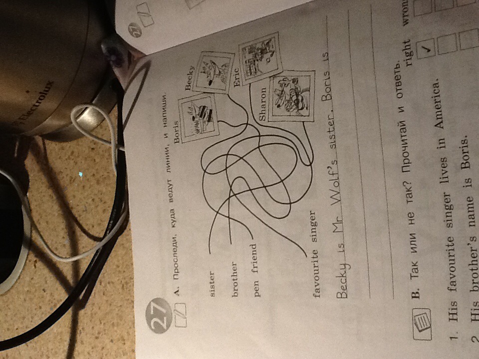 Boris is Mr. Wolf's brother . Eric is Mr. Wolf's pen friend . Sharon is Mr. Wolf's favorite singer