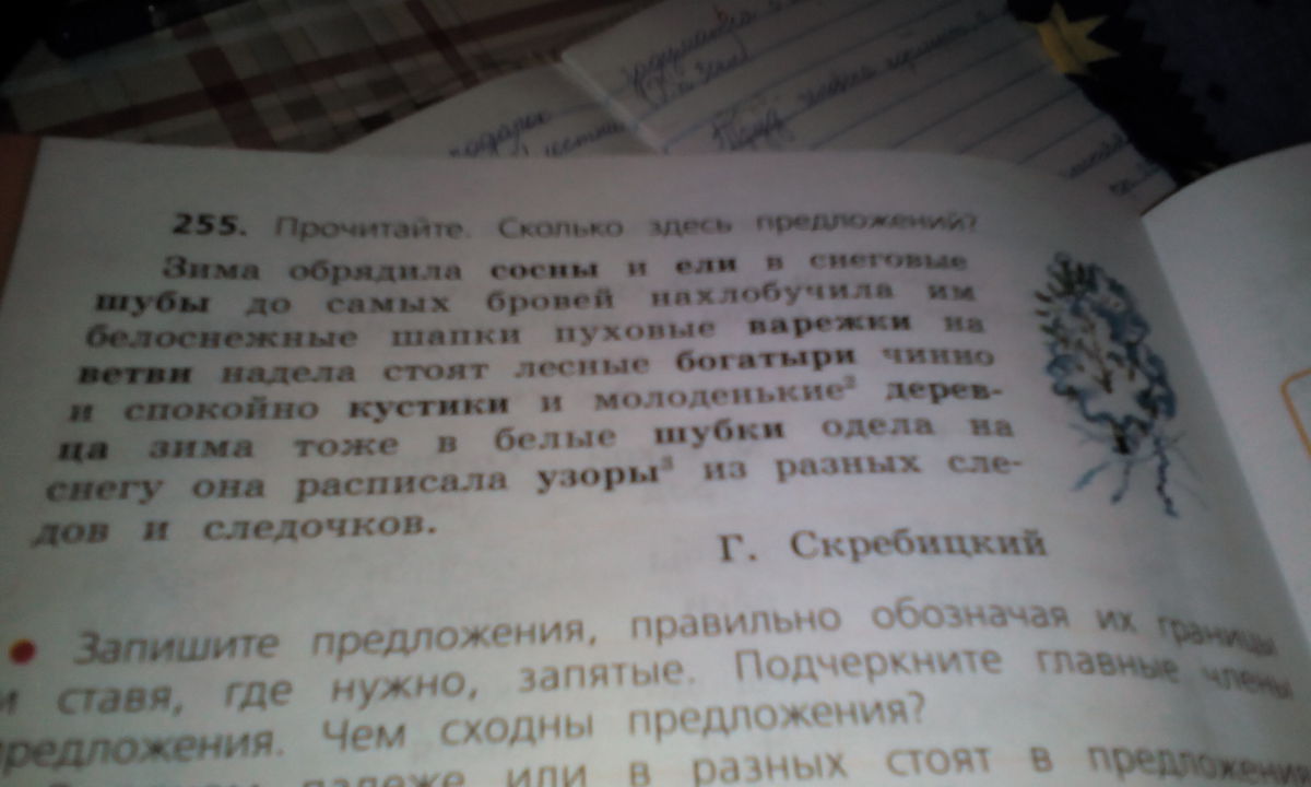 расставить правильно , . зима обрядила сосны и ели в снеговые шубы до самых бровей нахлобучила им белоснежные шапки пуховые варежки на ветви надела стоят лесные богатыри чинно и спокойно кустики и молоденькие деревья зима тоже в белые шубки отдела на снегу она расписала узоры из разных следов и следочков