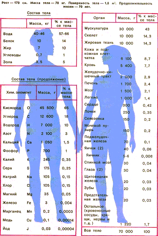 Вобще человек состоит на 65% из кислорода,на 18% углерода и на 10% из водорода.Всё остальное - другие элементы.Лёгкие занимают всего лишь 1,4% от массы тела человека.