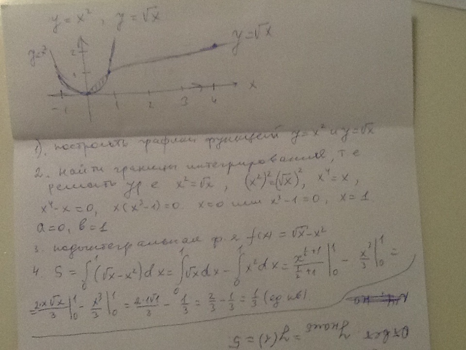 вычислить площадь фигуры, ограниченной графиками функций: y=x^2 и y=квадратный корень из X